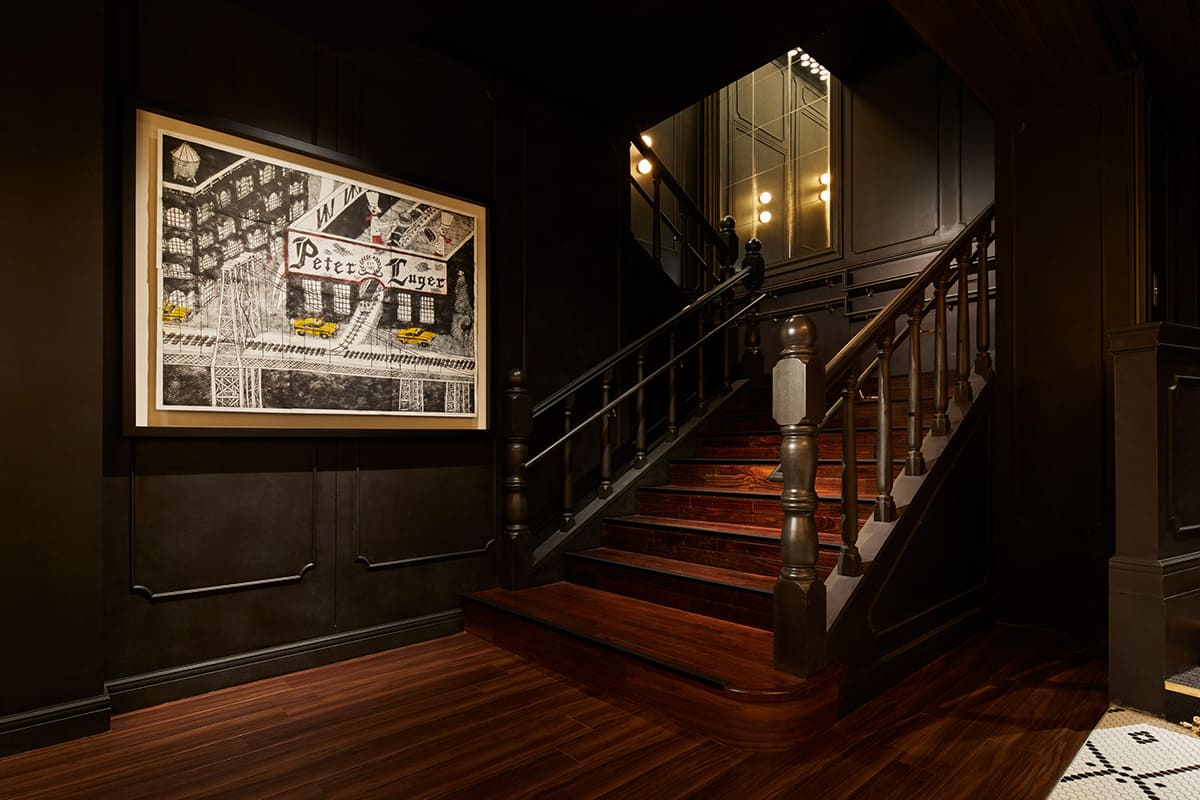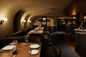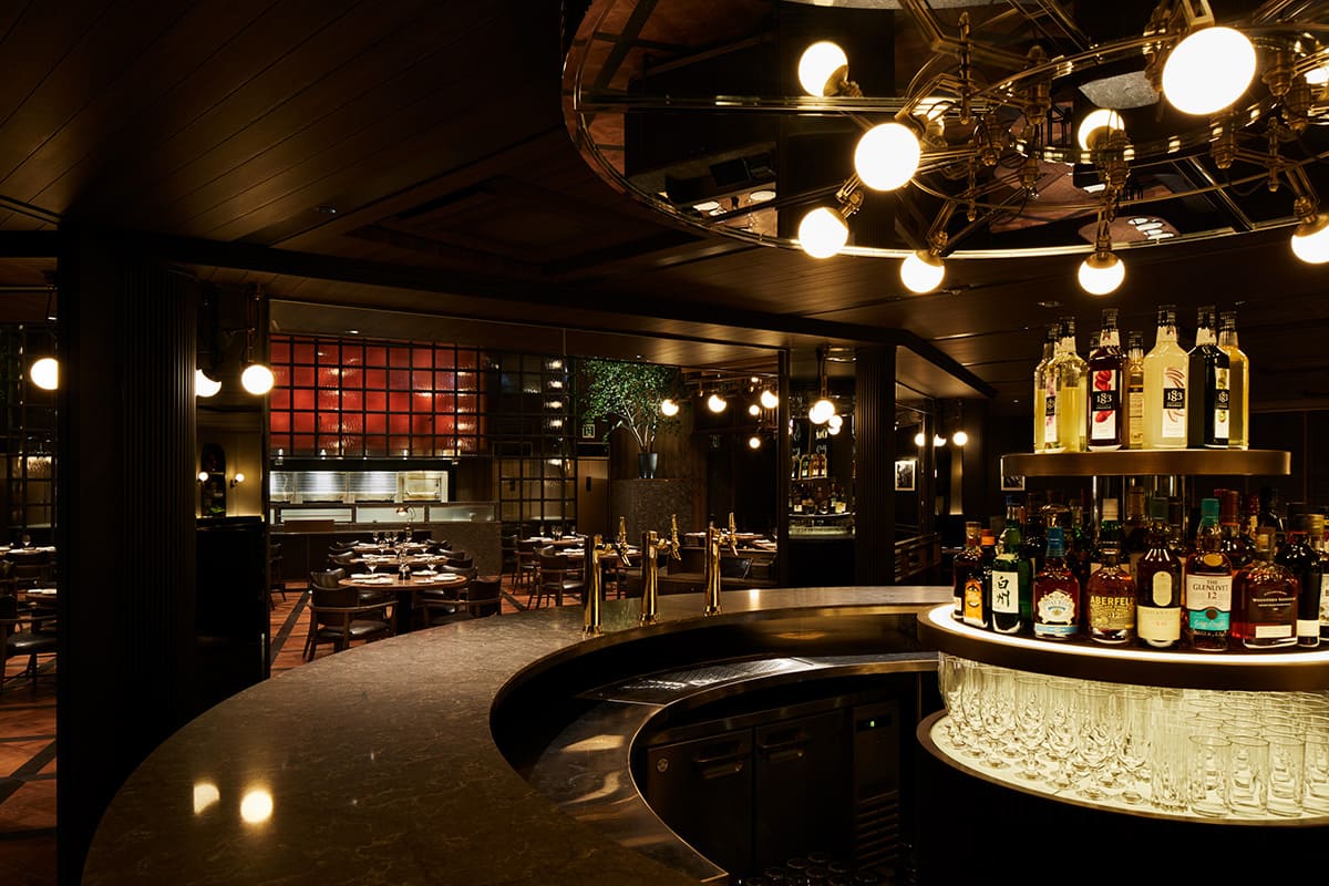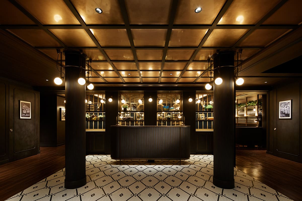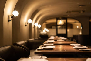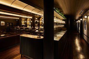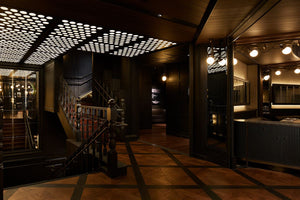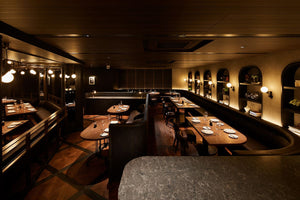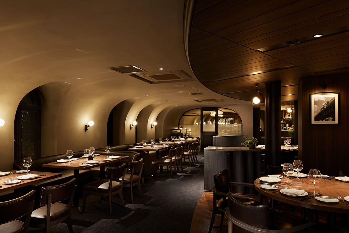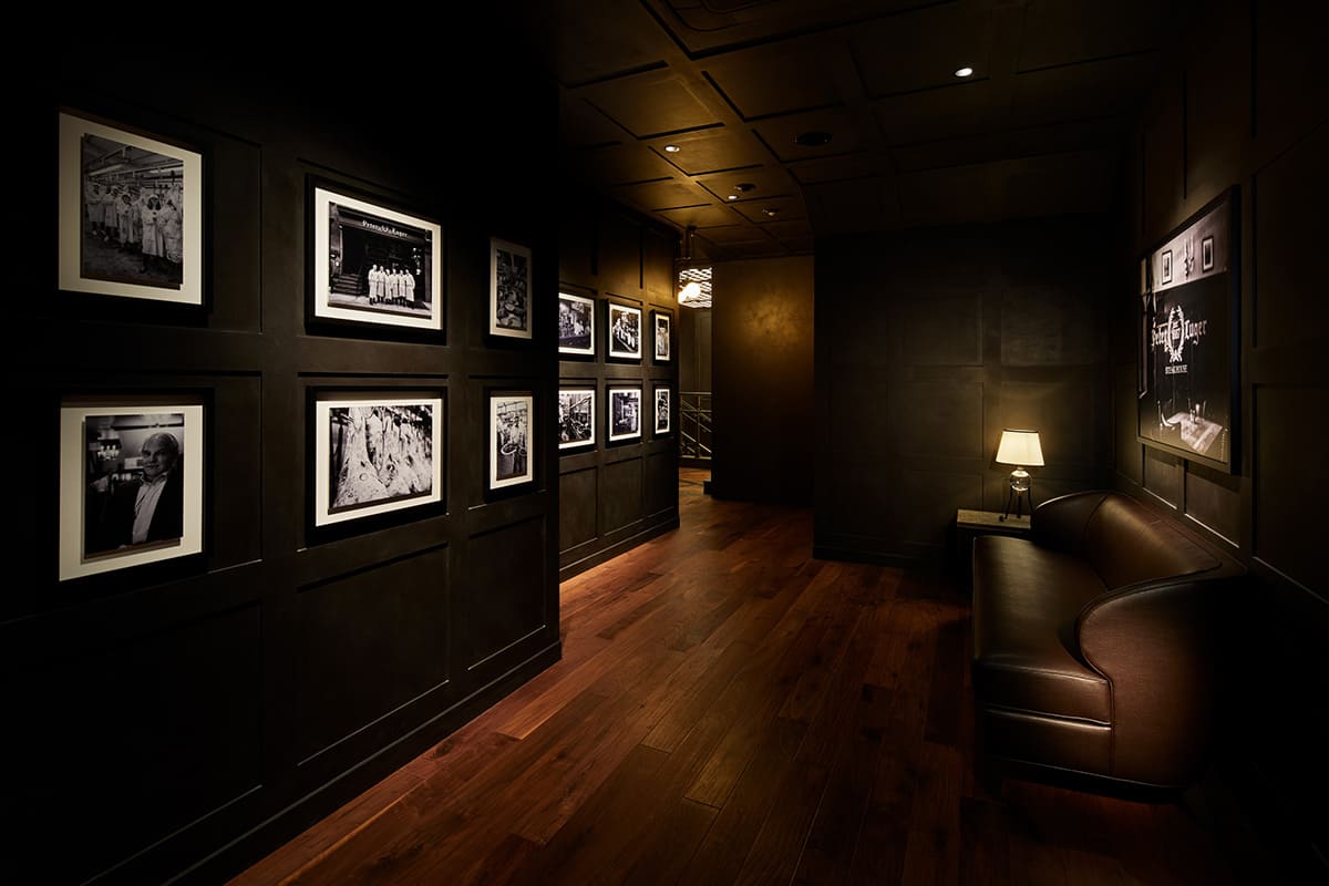 1階にはバーと8名様でご利用いただける4部屋の個室をご用意しています。お部屋はパーテーションによって繋げて使用することで、最大32名様までご利用いただけます。また、生肉、ケーキやオリジナル商品の販売をしているブティックも設け、持ち帰りやギフト用の商品をお買い求めいただけます。