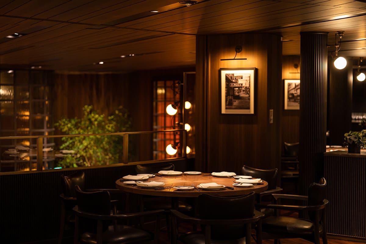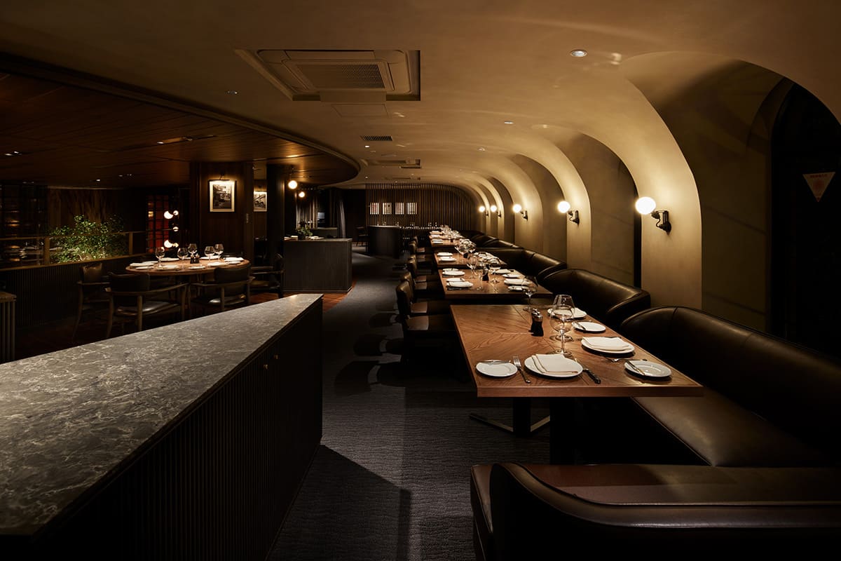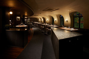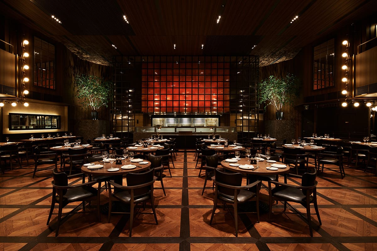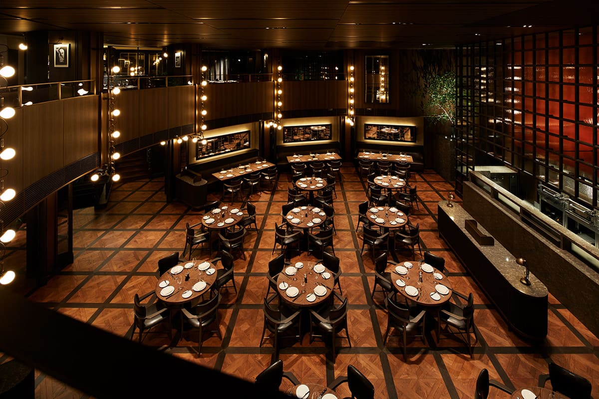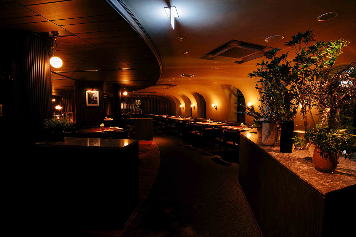 メインダイニングの2階は、オープンキッチンが備わった臨場感のあるフロアです。天井高6mの開放的な空間が広がっています。10名様でご利用いただける個室も1室ご用意しています。