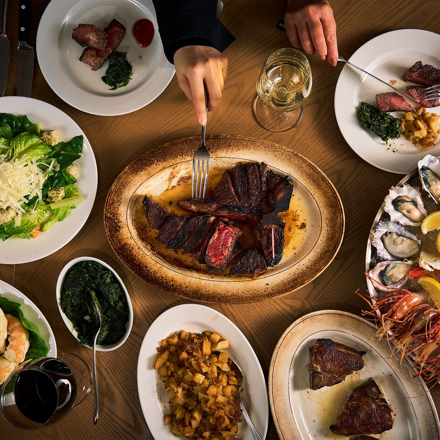 Peter Luger 以其 T 骨牛排而闻名,该牛排结合了西冷牛排和菲力牛排。虽然现在可以在任何牛排馆的菜单上找到它,但 Peter Luger 是第一个提供它并使其在美国流行起来的人。我们采用世代传承下来的精湛技术,精心挑选经美国农业部 (USDA) 评级的优质牛肉。东京店沿用与布鲁克林旗舰店相同的方法,包括熟成方法、腌制方法、烧烤方法和上菜方法,并提供与总店相同口味和品质的牛排。