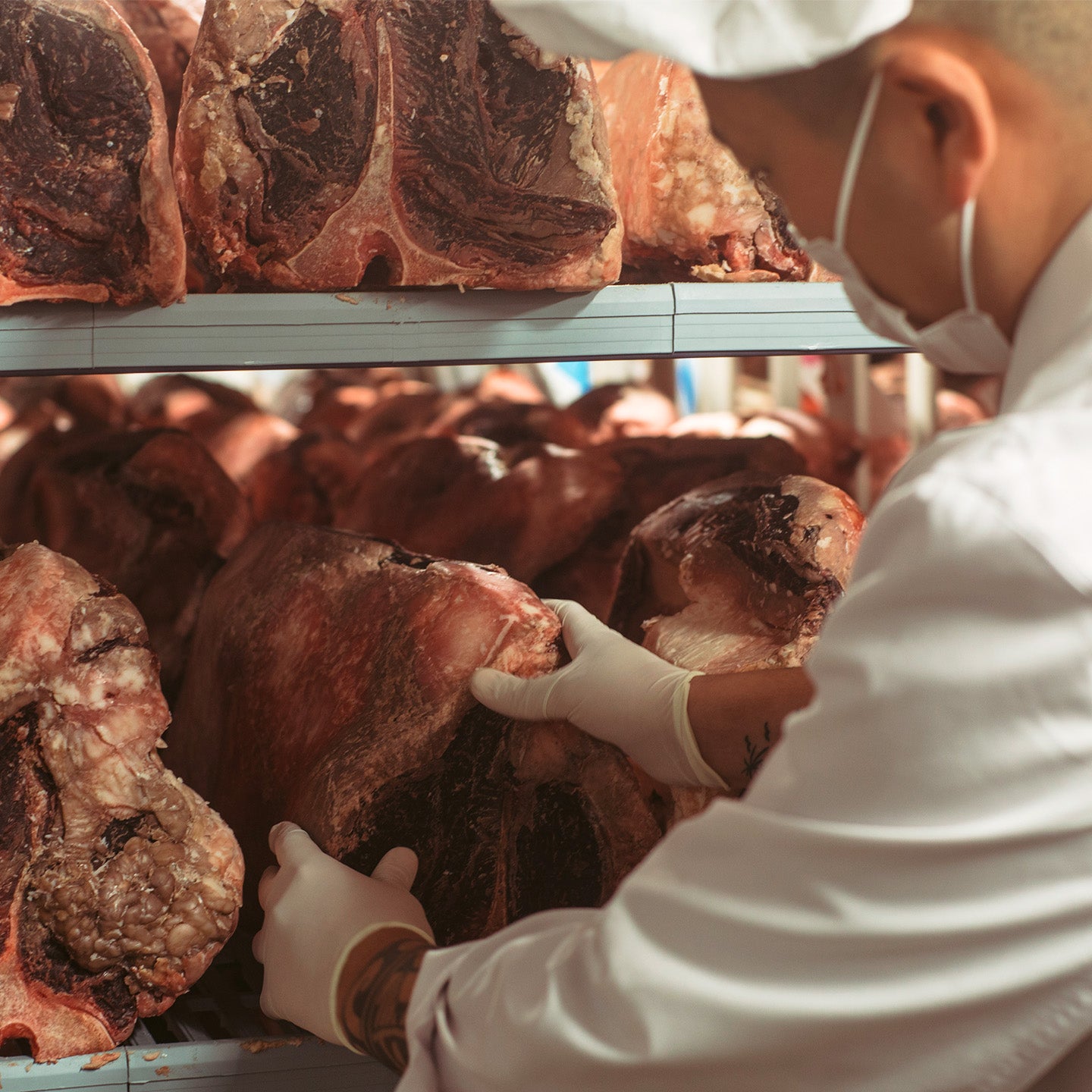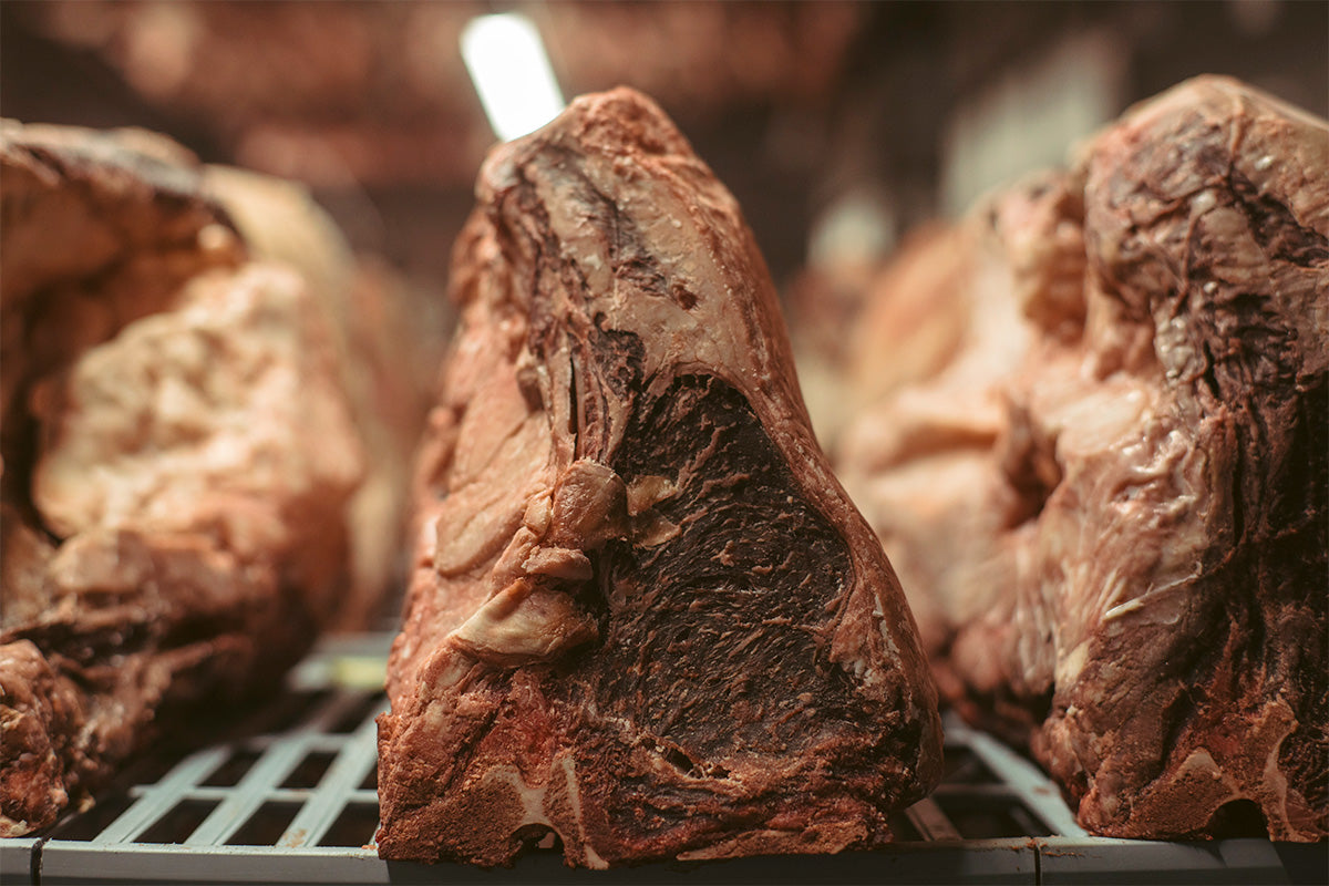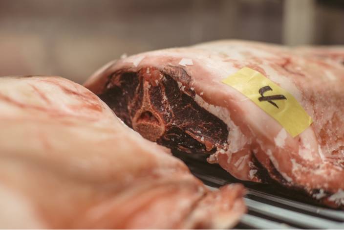一般来说,干式熟成技术包括控制温度、湿度和空气,以增加牛肉本身的水分活性,将蛋白质和矿物质集中到瘦肉的核心。此外,肌肉细胞中存在的酶和某些微生物产生的酶会分解蛋白质,从而大幅增加鲜味氨基酸的含量,并产生鲜嫩多汁的肉质。